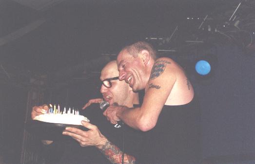 Terry Bones, und Micky Fairbairn folgten und schließlich kam auch Micky Fitz unter lautem Jubel des anwesenden Pöbels aufs Parkett und ab ging die Post u.a. mit Takers & Users von ihrem wieder mal recht gelungenen aktuellen Album "No Mercy For You" und natürlich den Klassikern "Harry May" und "Drinking & Driving". Letzterer durfte an diesen Abend schon allein deshalb nicht fehlen, da es schließlich Micky Fitzs Geburtstag war . Sein 21., wie er behauptete. Wer´s glaubt !
