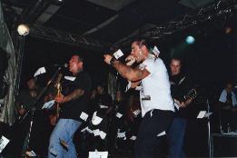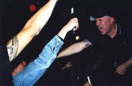 | Allerdings muß ich zu meiner Schande gestehen, dass mich der angekündigte Auftritt von Bonecrusher zunächst überhaupt nicht hinter dem Ofen hervorzulocken vermochte, da mit die Stücke, die ich bislang von der Band auf den TKO Samplern gehört hatte so überhaupt nicht zusagten. | ![]() |
