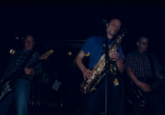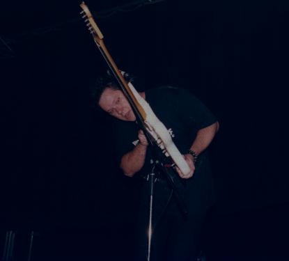 Einem der Anwesenden schien der Auftritt der Jungs offensichtlich weniger gefallen zu haben. Jedenfalls stürmte irgend ein Depp in einer kurzen Pause plötzlich die Bühne und den ahnungslosen und völlig verdutzten Blüm zu Boden, aus welchen Gründen auch immer. Klar, daß so etwas nicht ungestraft über die Bühne gehen konnte. Die übrigen Anwesenden fackelten nicht lange, griffen sich den Störenfried, geleiteten ihn mehr oder weniger freundlich ins Freie und der Spaß konnte weitergehen.> | ![]() Chet, The Templars |