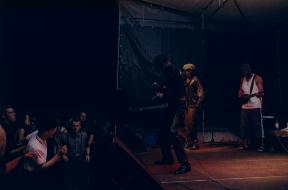 So fand sich denn auch ne Menge Volk aller Altersklassen und coleur vor und auf dem Dach des Schuppens ein, um dem King Of SKA zu lauschen, wobei sich die anwesenden Hippies erfreulicher Weise während des gesamten Auftritts immer schön im Hintergrund hielten, so daß der Platz vor der Bühne, wie es sich gehört, für die doch wieder einmal etwas zahlreicher erschienenen Skinheads reserviert blieb, um ordentlich das Tanzbein zu schwingen.