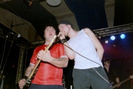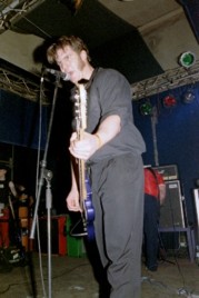 | Die Jungs von Smoke Blow schienen auch zunächst nicht so richtig mit dem Spielen in die Gänge zu kommen, turnten dann jedoch mit einem Mal trotz Krücke wie wild auf der Bühne rum und legten mit einer ziemlich hammermäßigen Mischung aus Punk, der mich komischer Weise etwas an die Misfits erinnerte, Metall, Stoner Rock und Hardcore īnen für meinen Geschmack erstaunlich geilen Auftritt hin. Leider lief die Party allerdings in erster Linie auf der Bühne ab und der Funke sprang nicht wirklich aufs Publikum über, da sich außer ein oder zwei Leuten kaum jemand vor bis zur Bühne velief. | ![]() |